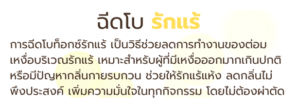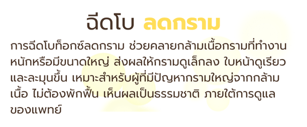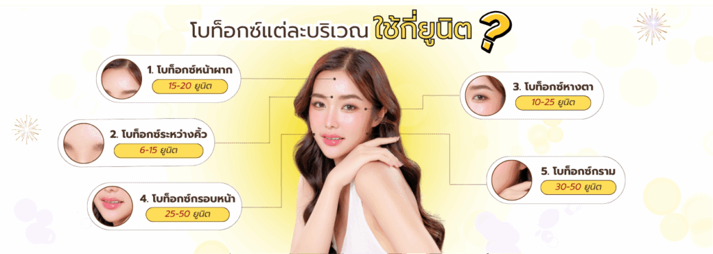 * จำนวนยูนิต ขึ้นกับ ความแข็งแรงของกล้ามเนื้อก่อนฉีด และ ไลฟ์สไตล์การใช้ชีวิต